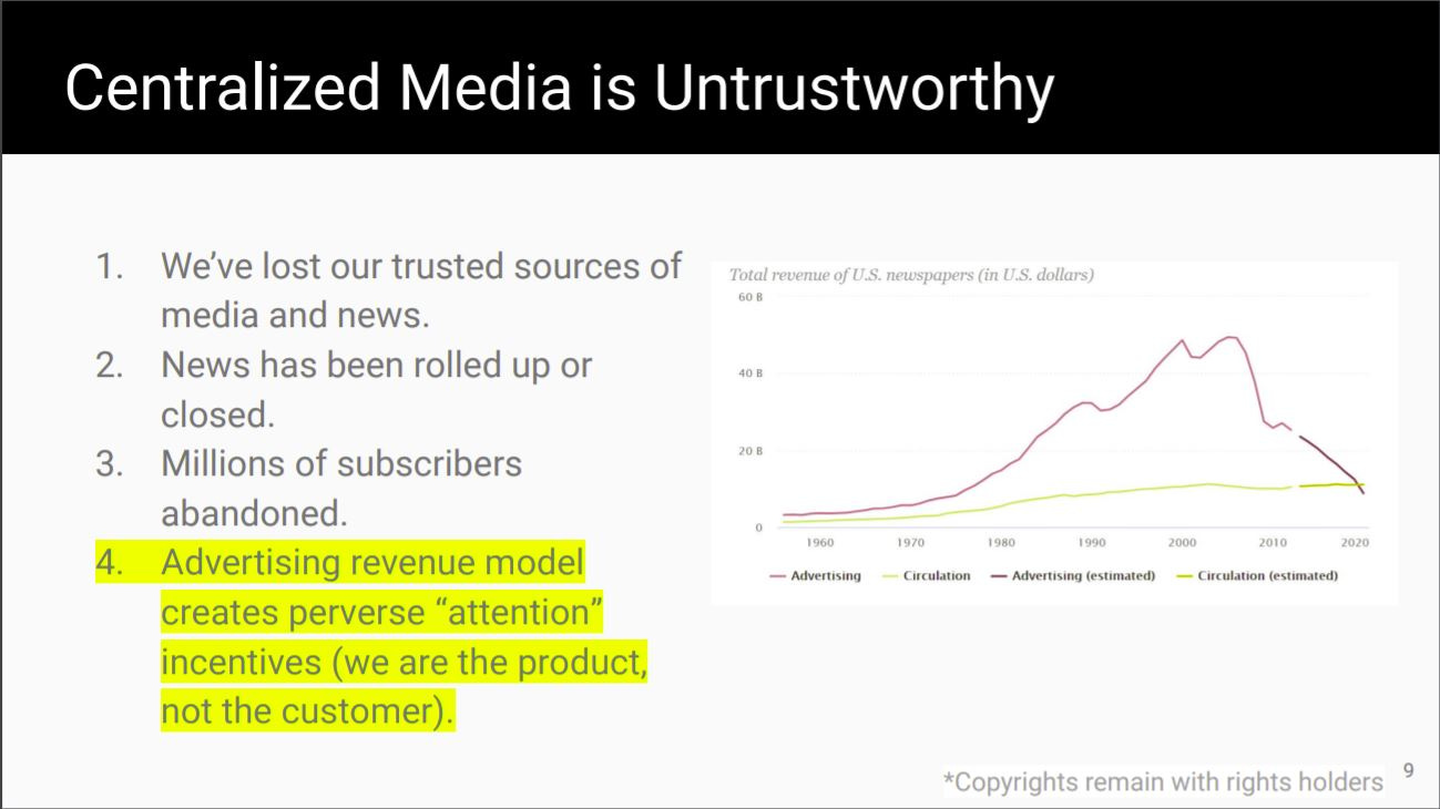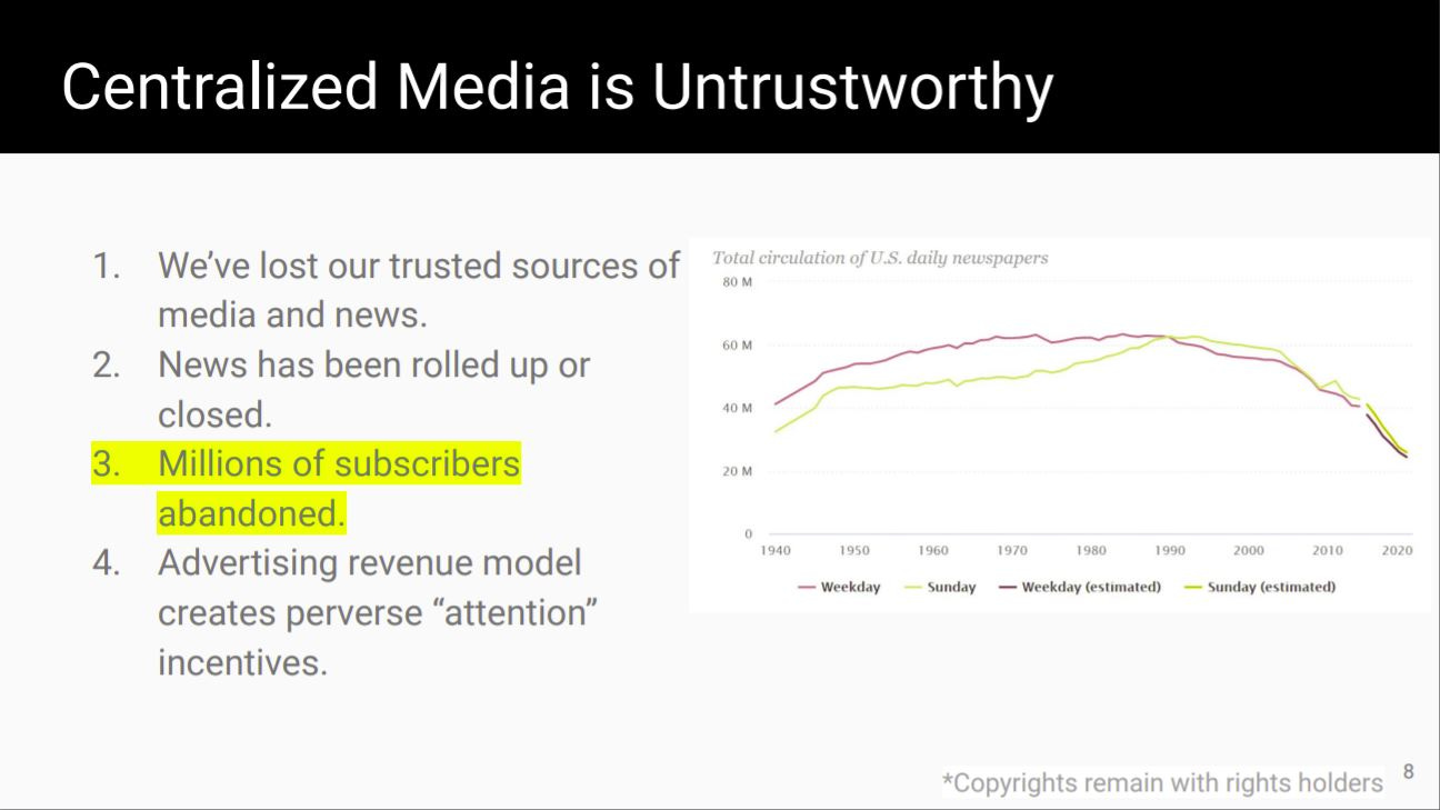 #2. This is a rare invitation to be early on something by participating in the Immutable Type crowdfund. It’ll require some time for momentum, but this thing is going to happen. When we look back, we’ll wonder why someone hadn’t done this previously. It’s as obvious as those little things that cover the openings in the Starbucks cups. Coffee cup hole-plugs are so obvious in hindsight! Immutable Type will be the same—so obvious. There will be NFTs and immutable records of journalists’ publishing, and we’re going to do it. Please support the crowdfund as best you are able. Thank you for hitting a homerun when you do. See the crowdfund here.